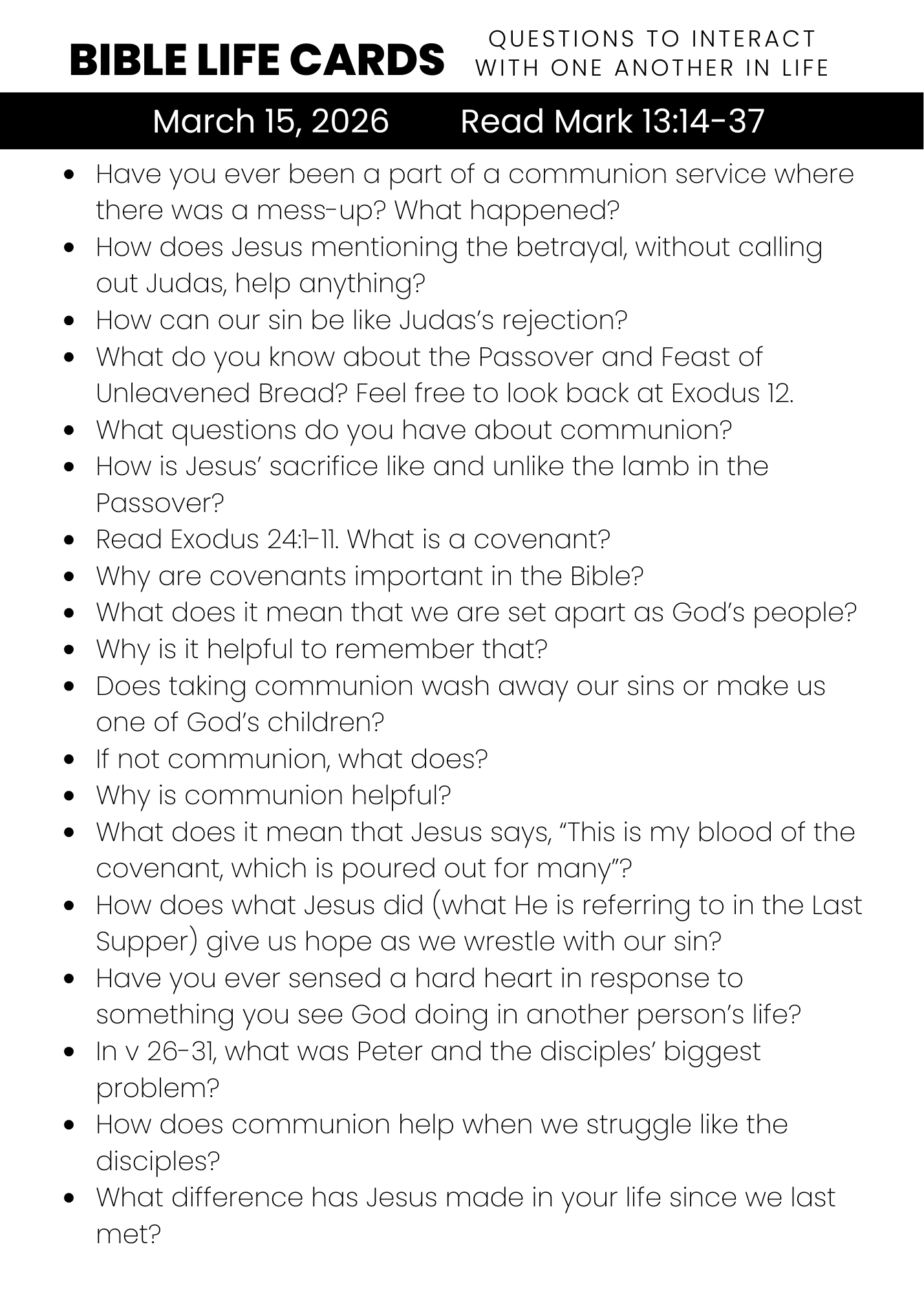 Here are some Discussion Questions for your family and small group.